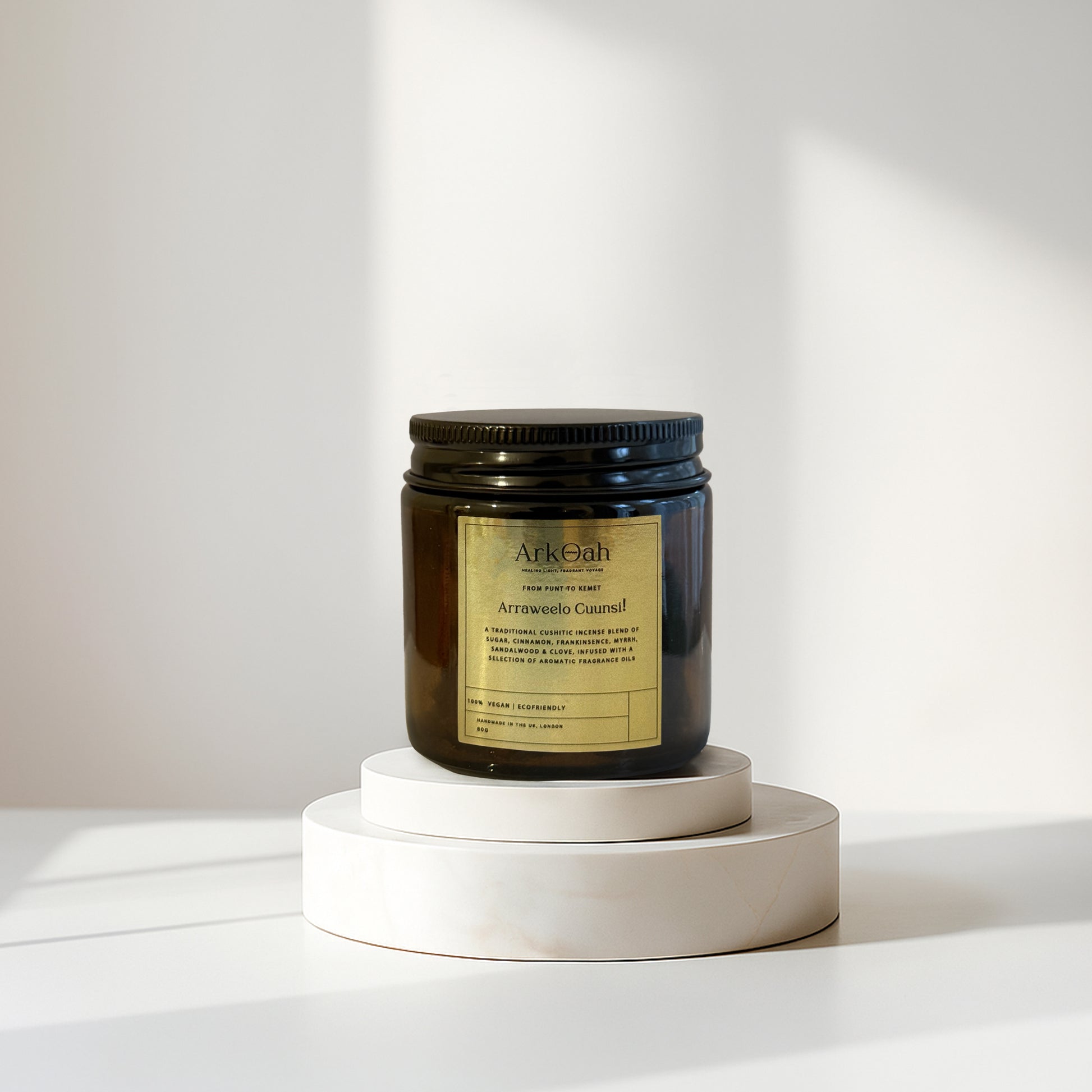 - Scent : A Cushitic Incense blend of Sugar, Cinnamon, Frankinsence (Maydi), Myrrh, Sandalwood & Clove